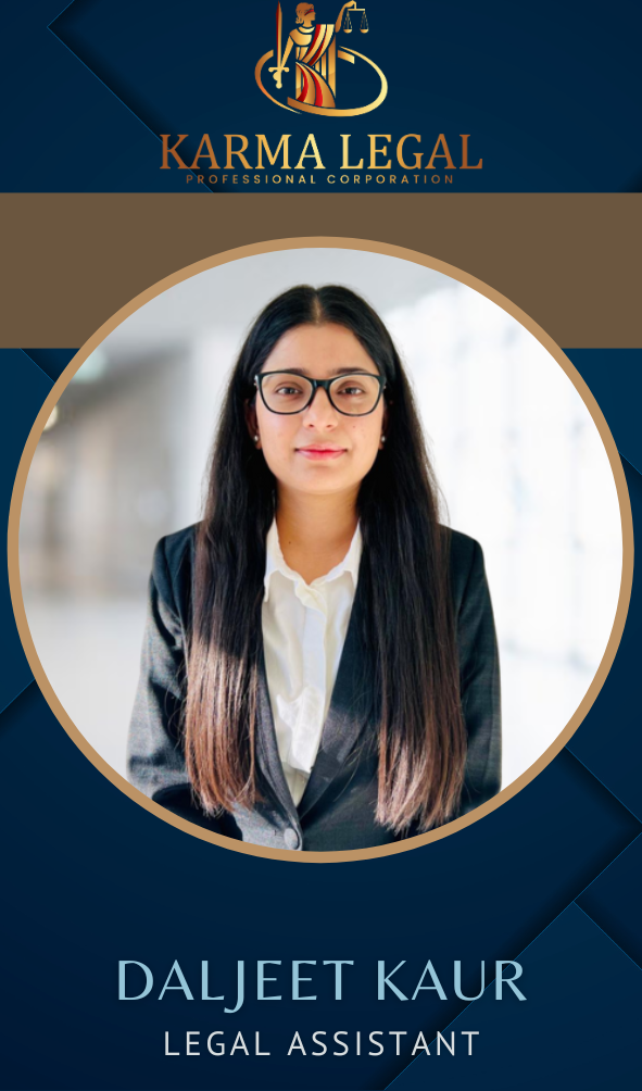Daljeet Kaur serves as the Legal Assistant at Karma Legal Professional Corporation, assuming responsibility for facilitating seamless communication between the firm’s team and clients while prioritizing client concerns and addressing urgencies effectively.